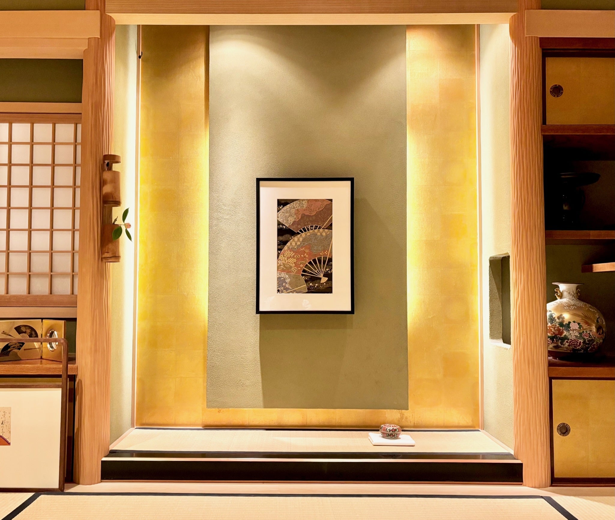 直線の畳の縁に黒の額縁が馴染み、和の雰囲気の演出に最適。