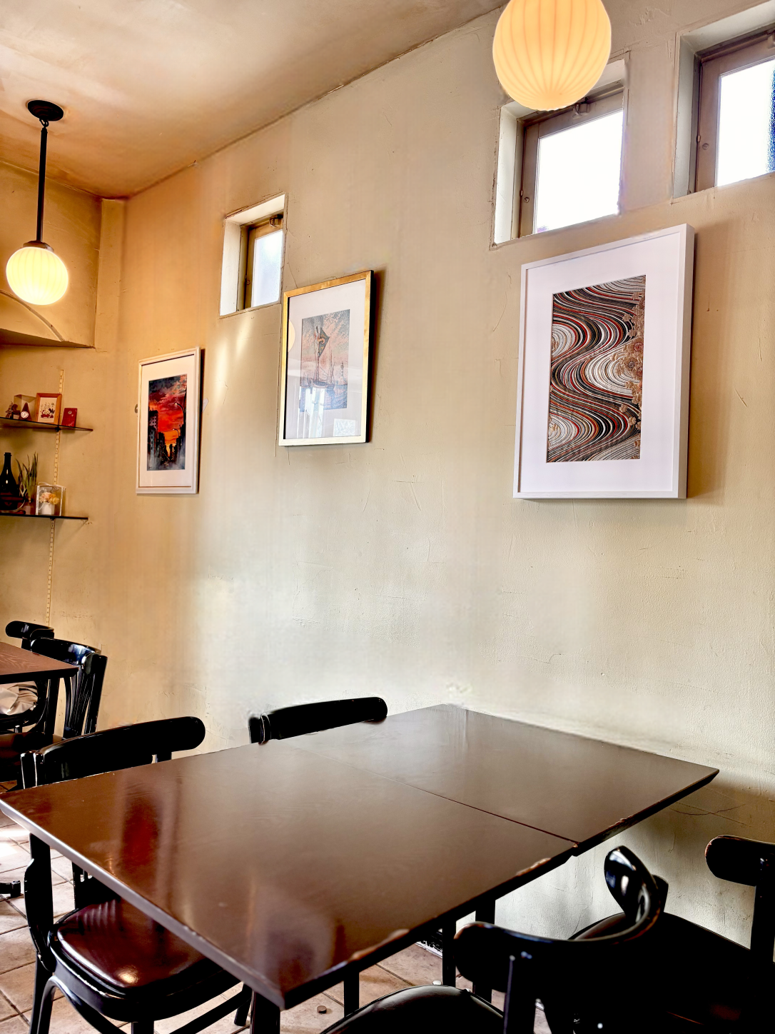 黒い額縁を複数並べたスタイルは、ギャラリー空間を創りだします。